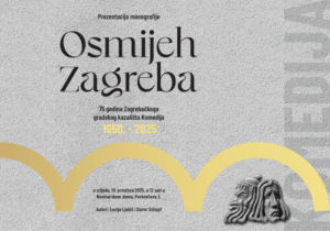 U srijedu, 10. prosinca 2025. u 12 sati u Velikoj dvorani Novinarskoog doma, Perkovčeva 2, svečano će biti predstavljena monografija Osmijeh Zagreba – 75 godina Zagrebačkoga gradskog kazališta Komedija, 1950. – 2025.